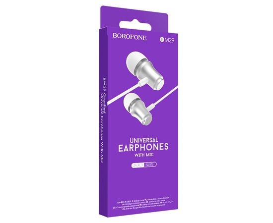 Проводные наушники BOROFONE BM29 Gratified, Jack 3.5mm, 1.2 м, серебристый