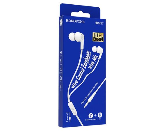 Проводные наушники BOROFONE BM37 Noble, Jack 3.5mm, 1.2 м, белый