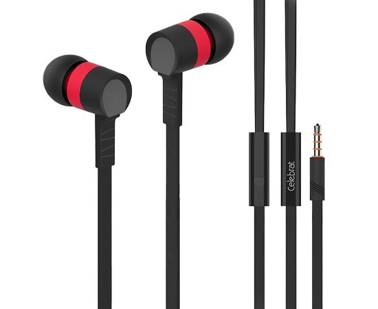 Проводные наушники с микрофоном внутриканальные Celebrat D2 Jack 3,5 (red) (106449)