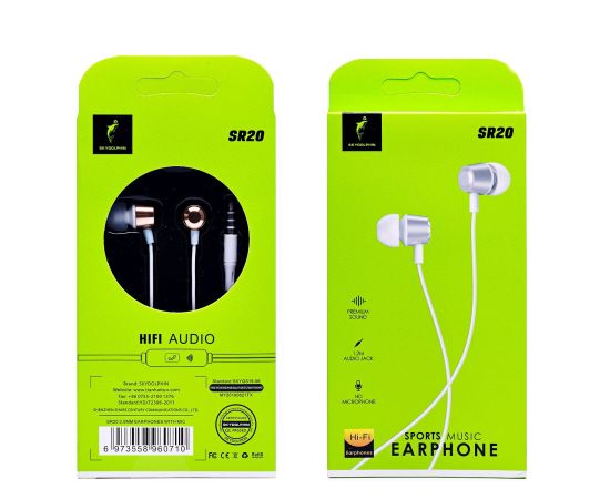 Проводные наушники с микрофоном внутриканальные SKYDOLPHIN SR20 Jack 3,5 (white) (206550)