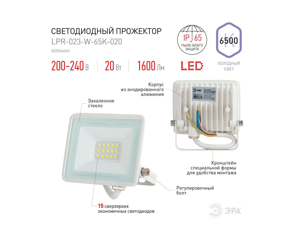 Прожектор уличный ЭРА LPR-023-W-65K-020 (Б0054640) белый