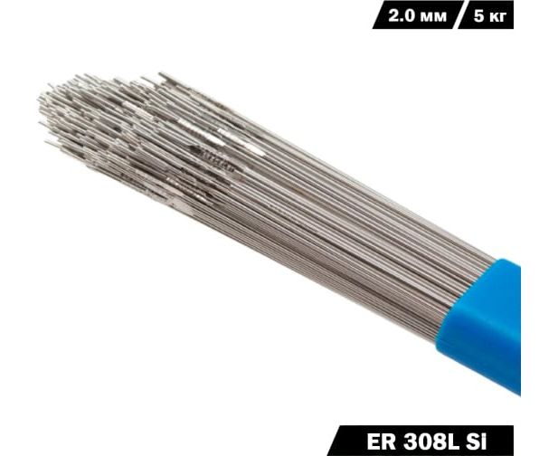 Присадочные прутки TIG ER-308LSi 2мм являются коррозионностойким хромоникелевым 20Cr/9Ni присадочным прутком с особо низким содержанием углерода для дуговой сварки вольфрамовым электродом в среде защищенных газов, пригодным для сварки аустенитных нержавеющих сталей, марки 18Cr/8Ni, типа сталей марок AISI 301, 302, 304, 304L, 308 и 308L, 03Х18Н11, 06Х18Н11, 08Х18Н10Т и т.п.