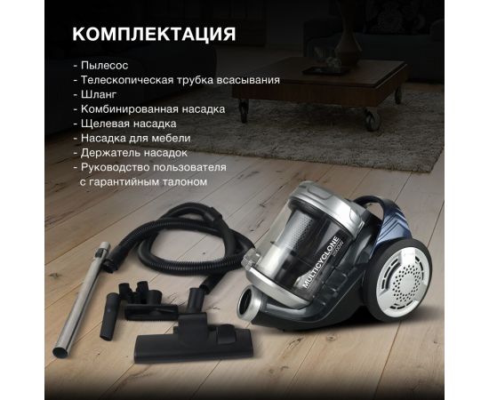 Пылесос Hyundai HYV-C2575 серебристый/темно-синий