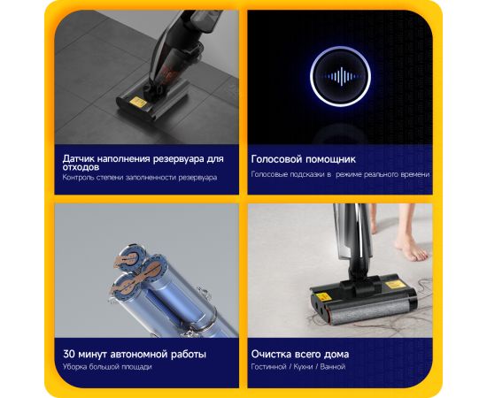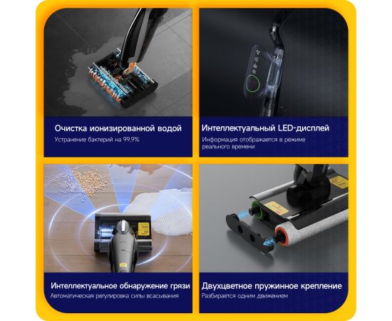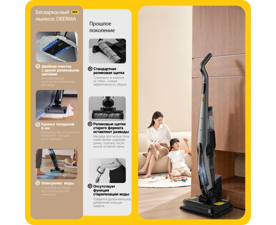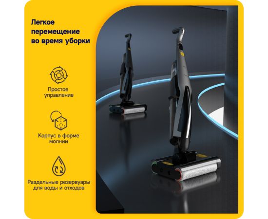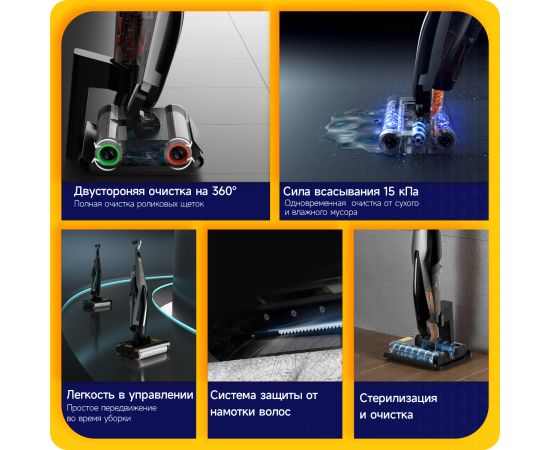 Моющий пылесос вертикальный Deerma DEM-VX96W серый, питание - от аккумулятора, влажная, сухая