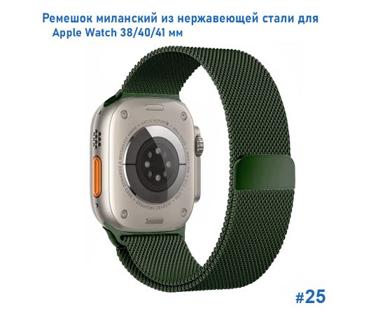 Ремешок миланcкий из нержавеющей стали Great Case Milanese Loop для Apple Watch 38/40/41 мм, 235мм, на магните, хаки (25)