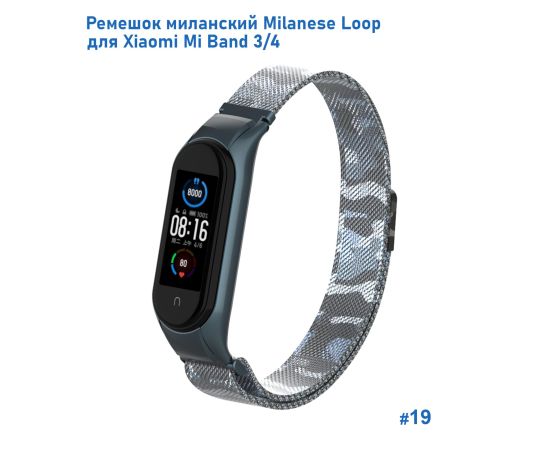 Ремешок миланcкий из нержавеющей стали Great Case Milanese Loop для Xiaomi Mi Band 3/4, 260мм, на магните, камуфляж+белый (19)