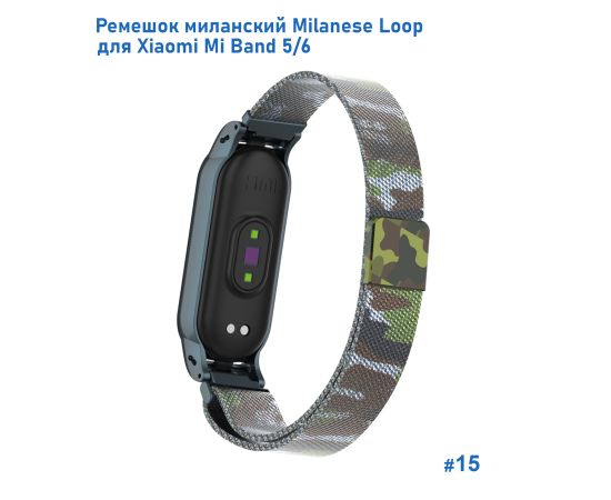 Ремешок миланcкий из нержавеющей стали Great Case Milanese Loop для Xiaomi Mi Band 5/6, 260мм, на магните, камуфляж+зеленый (15)