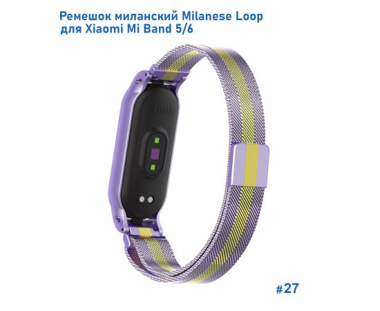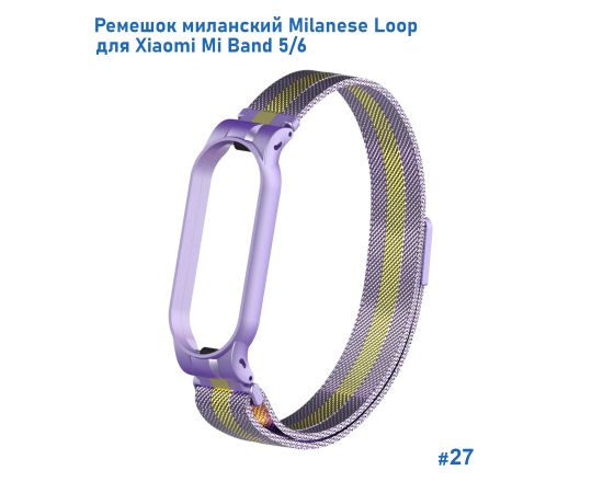 Ремешок миланcкий из нержавеющей стали Great Case Milanese Loop для Xiaomi Mi Band 5/6, 260мм, на магните, фиолетовый+золотой (27)