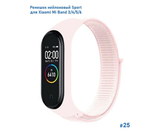Ремешок нейлоновый Great Case Sport для Xiaomi Mi Band 3/4/5/6/7, 260мм, на липучке, бледно-розовый (25)