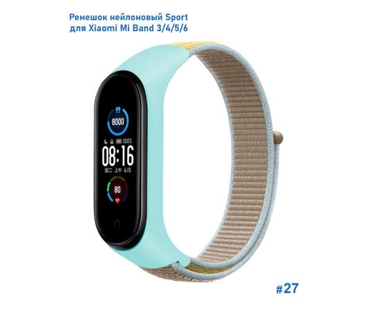 Ремешок нейлоновый Great Case Sport для Xiaomi Mi Band 3/4/5/6/7, 260мм, на липучке, голубой+коричневый (27)
