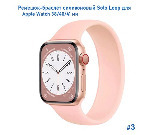 Ремешок-браслет силиконовый Great Case Solo Loop для Apple Watch 38/40/41 мм, L(145мм), пудровый (3)