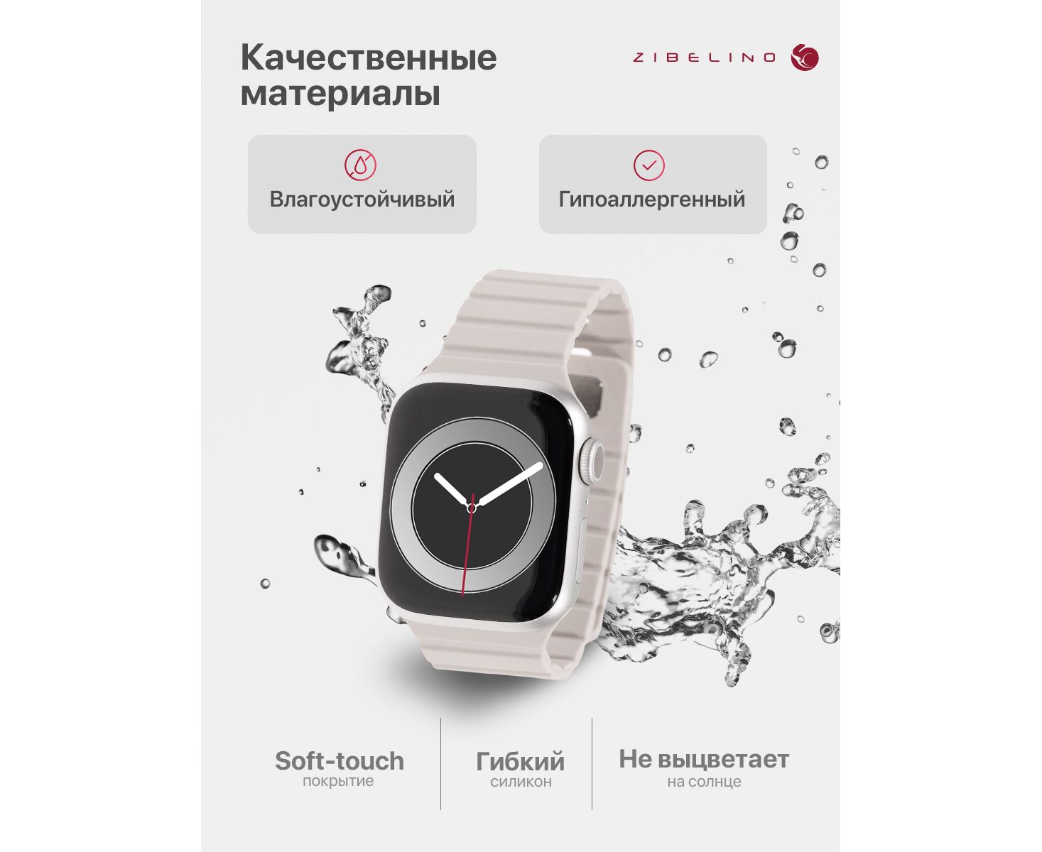 - Комфорт и гигиеничность: гипоаллергенный силикон браслета Apple Watch с soft touch покрытием мягкий, гладкий и приятный на ощупь. Не натирает кожу даже при длительном ношении.