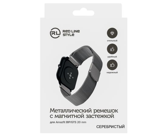Ремешок металлический магнитный для cмарт часов Xiaomi Amazfit BIP/GTS 20 mm, серебристый