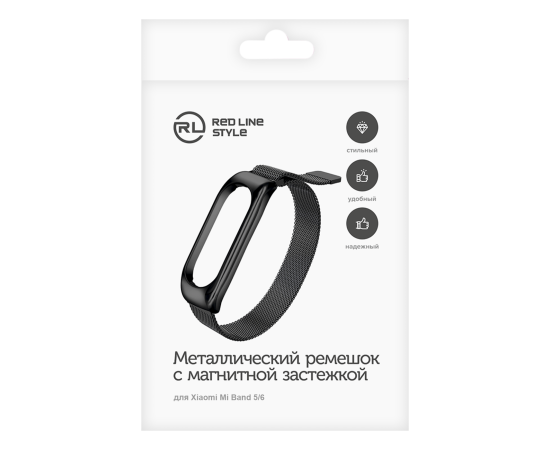 Ремешок миланская петля, металлический для Xiaomi Mi Band 5/6, черный