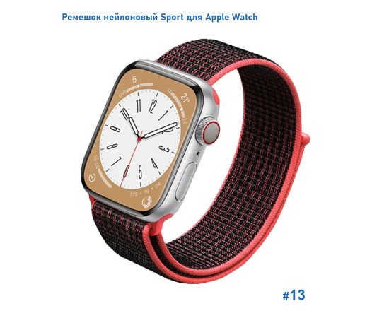 Ремешок нейлоновый Great Case Sport для Apple Watch 42/44/45/49 мм, 255мм, на липучке, красный+черный (13)