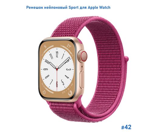 Ремешок нейлоновый Great Case Sport для Apple Watch 42/44/45/49 мм, 255мм, на липучке, пурпурный (42)