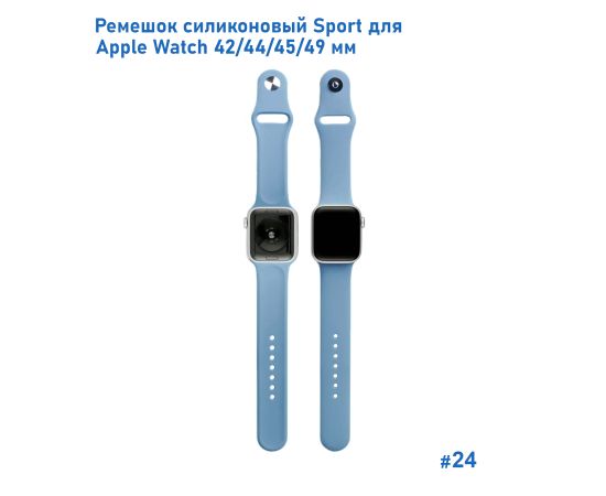 Ремешок силиконовый Great Case Sport для Apple Watch 42/44/45/49 мм, 235мм, на кнопке, лазурный (24)