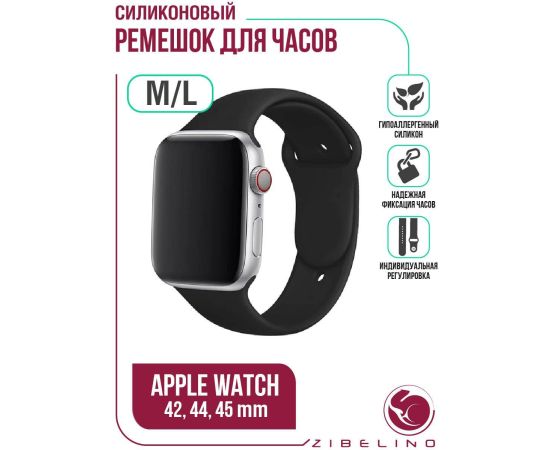 Ремешок силиконовый для Apple Watch 42мм, 44мм, 45мм (размер M/L) черный Эпл Вотч 42 мм 44 мм 45мм