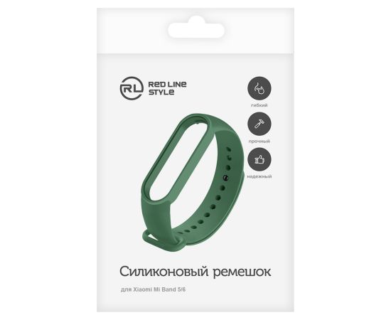 Ремешок силиконовый для Xiaomi Mi Band 5/6, темно-зеленый, №27