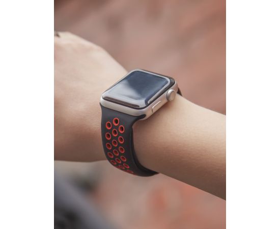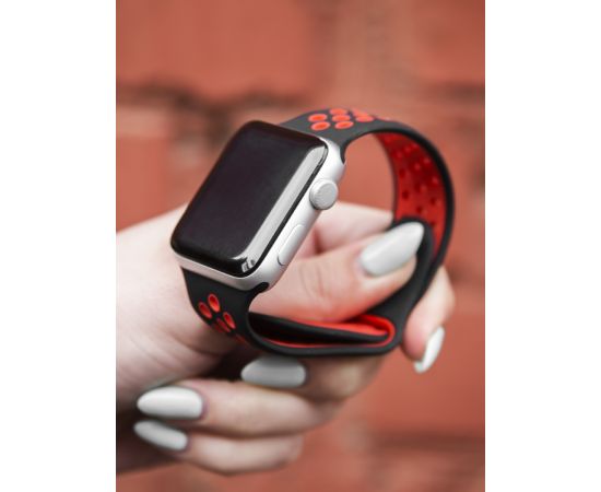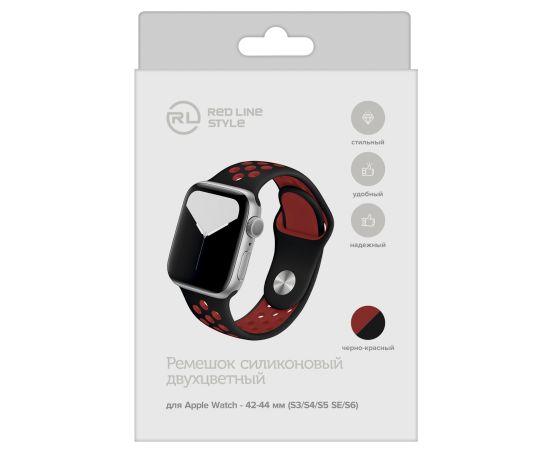 Ремешок силиконовый двухцветный для Apple watch - 42-44 mm (S3/S4/S5 SE/S6), черно-красный