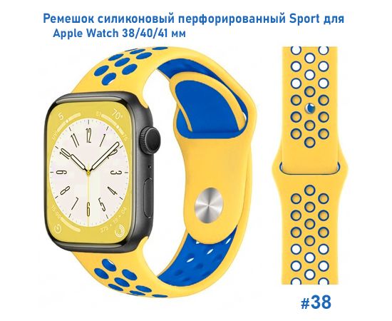 Ремешок силиконовый перфорированный Great Case Sport NK для Apple Watch 38/40/41 мм, 225мм, на кнопке, желтый+синий (38)