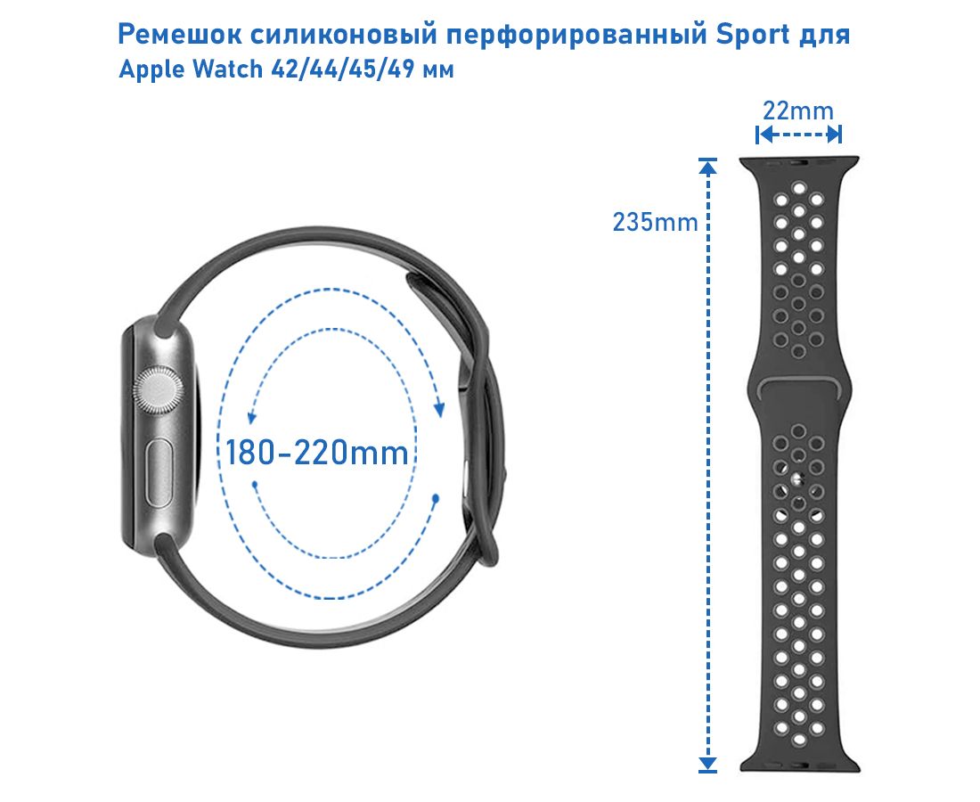 Силиконовый перфорированный ремешок Sport NK от Great Case, специально разработанный для Apple Watch, является примером высокого уровня инноваций в аксессуарах для носимых устройств. С бесчисленным количеством аккуратно расположенных отверстий, этот ремешок не только улучшает циркуляцию воздуха вокруг запястья, но и значительно уменьшает вес, делая его почти невесомым дополнением к вашему часу. Мягкость силиконового материала совместно с его прочностью обеспечивает комфортное и безопасное прилегание к коже, а также выдерживает испытания активного образа жизни, включая регулярные тренировки, плавание и другие виды активностей.Ремешок оснащен интуитивно понятной кнопочной застежкой, которая обеспечивает быструю и надежную фиксацию, позволяя вам легко адаптировать его под ваше запястье. Это сочетание дизайна и функциональности делает его идеальным для тех, кто желает выразить свою индивидуальность через аксессуары, сохраняя при этом акцент на удобстве и производительности.