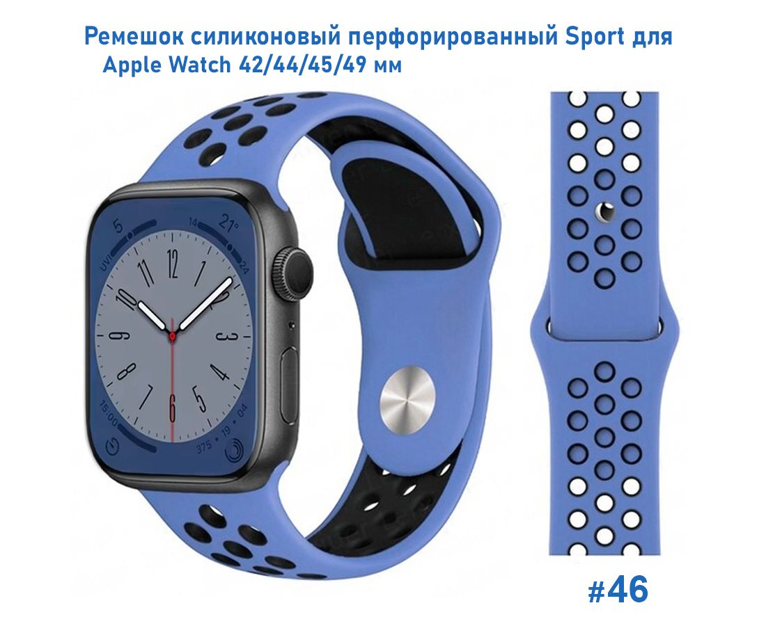 Ремешок силиконовый перфорированный Great Case Sport NK для Apple Watch 42/44/45/49 мм, 235мм, на кнопке, васильковый+черный (46)