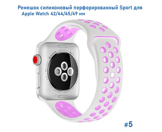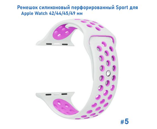 Ремешок силиконовый перфорированный Great Case Sport NK для Apple Watch 42/44/45/49 мм, 235мм, на кнопке, белый+фиолетовый (5)