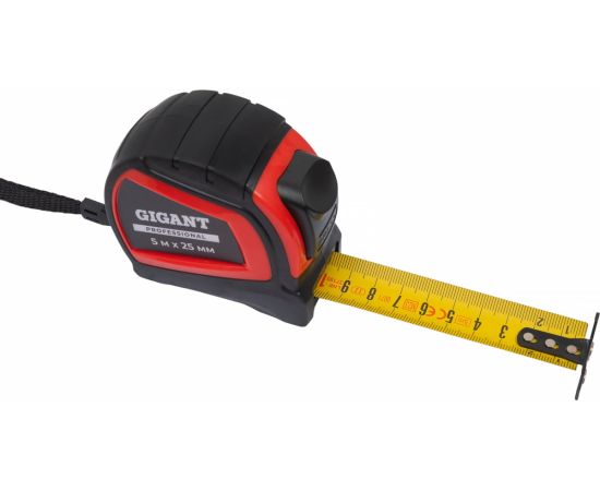 Рулетка Gigant Professional с автостопом 5м 25мм GPGW-03 пригодится в хозяйстве и на строительной площадке. С ее помощью можно осуществлять замеры стен, полов, различных материалов и конструкций.