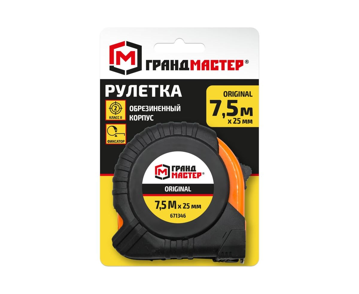 Рулетка измерительная ГРАНДМАСТЕР 671346 Original 7,5м*25мм, обрезиненный корпус, с фиксатором