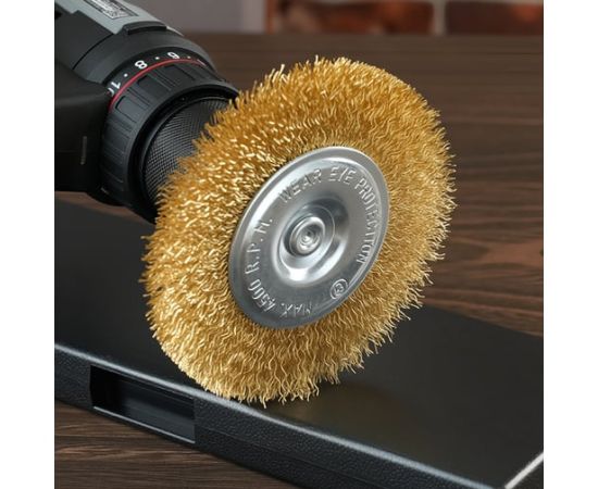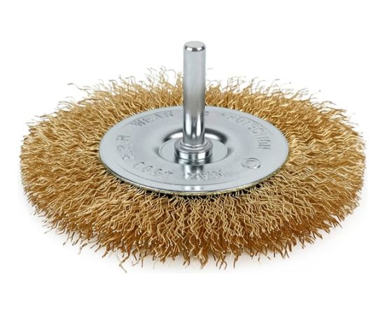 Щетка дисковая прямая для дрели Deli DH-GSS100-E4 100мм, латунированная, толщина проволоки 0,3мм, хвостовик 6мм, макс 4500об/мин