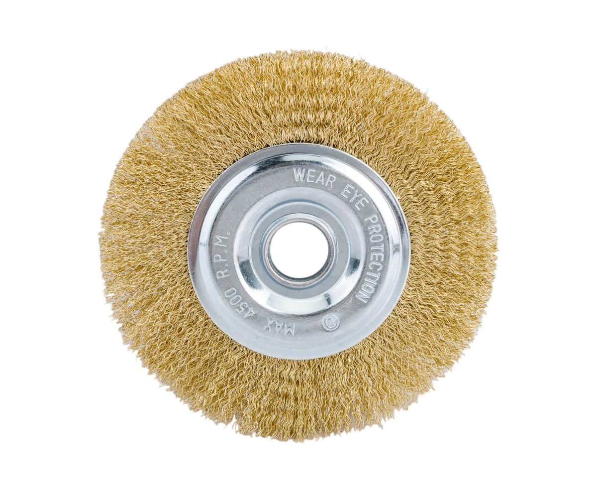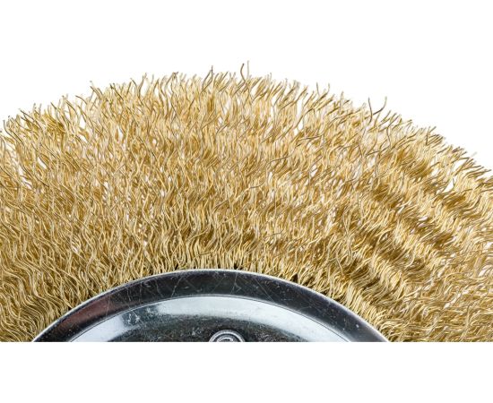 Щетка имеет волнистую форму проволоки с латунированным покрытием, продлевающим срок службы инструмента.