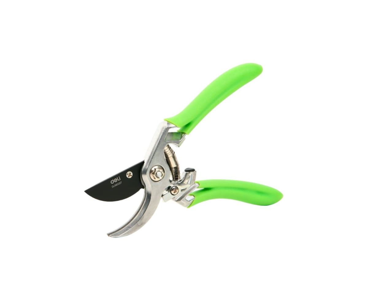 Секатор садовый Deli DL580207 цельнокованный, лезвия с тефлоновым покрытием, длина 215мм, макс. диаметр резки 12мм, сталь SK5