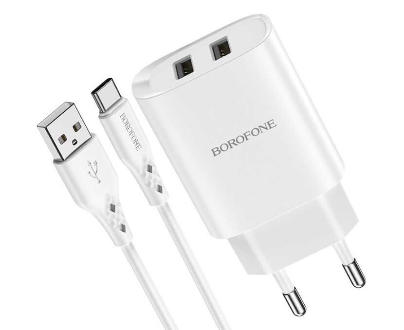 Сетевое зарядное устройство 2USB 2.1A в комплекте с дата-кабелем Type-C Borofone BN2 1м (White)
