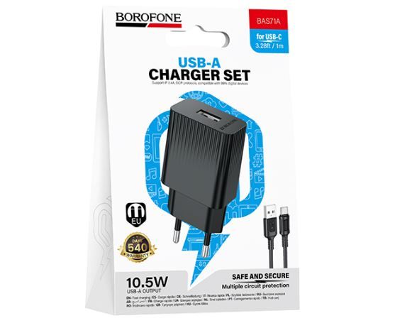 Сетевое зарядное устройство BOROFONE BAS71A/ СЗУ + Кабель Type-C 1m/ 1 USB/ Выход: 10.5W/ Черный