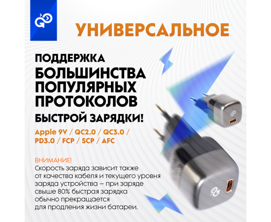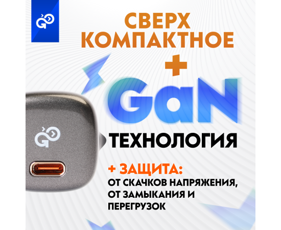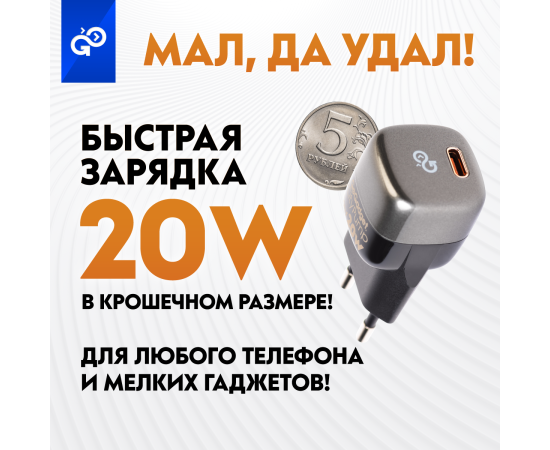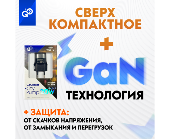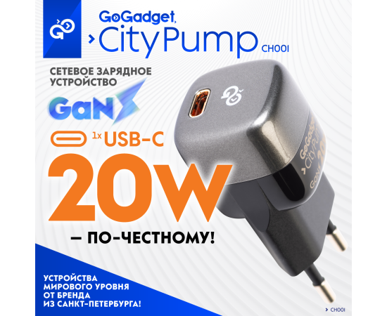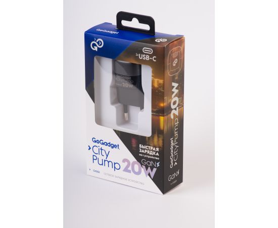 Сетевое зарядное устройство CityPump 20W 1xUSB-C GaN, ЧЕРНЫЙ