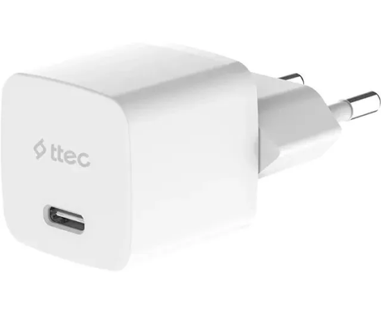 Сетевое зарядное устройство TTEC 2SCG20LB SmartCharger GAN 20W USB-C PD Travel Fast Charger с кабелем USB-C-Lightning, длина кабеля 150см белый