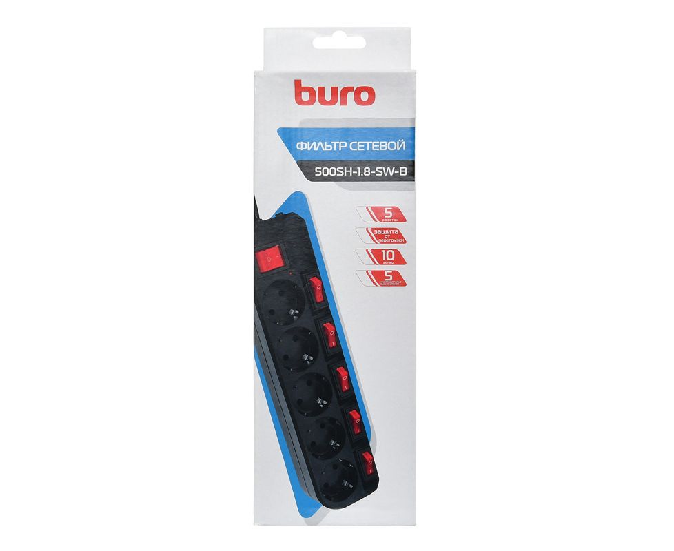 Сетевой фильтр Buro 500SH-1.8-SW-B 1.8м (5 розеток) черный