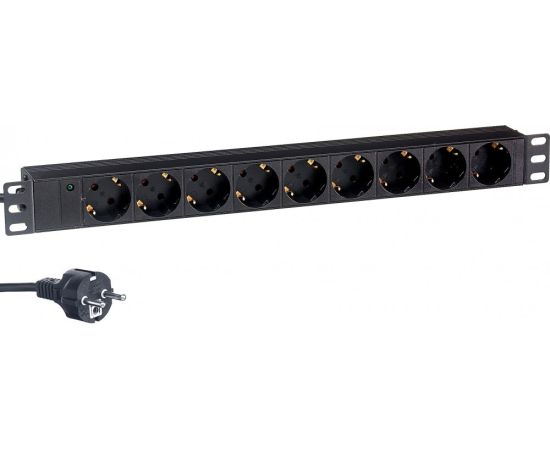 горизонтальный блок розеток, евровилка с заземлением, розетки: 9x Schuko, макс. ток нагрузки 16A, индикатор питания, стандарт VDE, EAC, кабель 2м