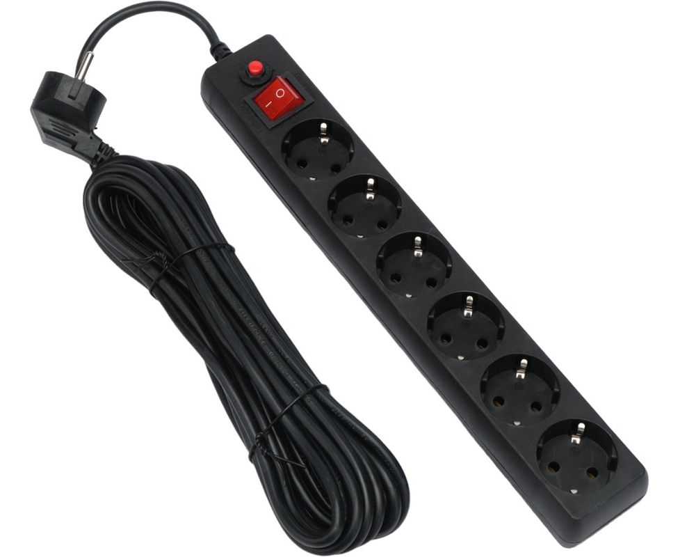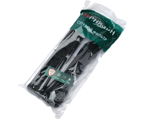 Сетевой фильтр Гарнизон ECL-6-B-7 6р, 10А, 7м, ур.защиты 4, черный, пакет (22433)