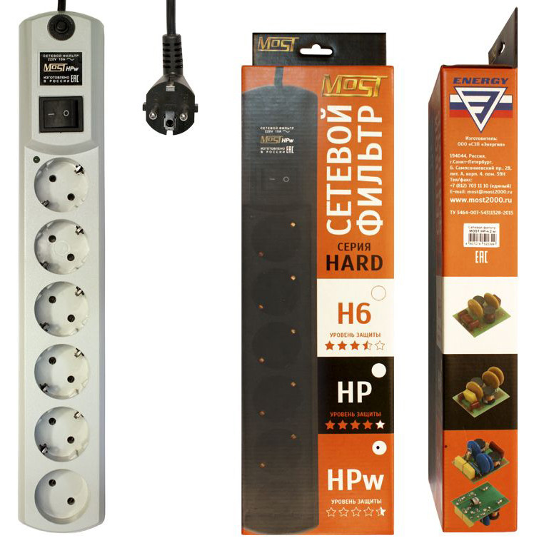 Сетевой фильтр Most HPw 5м (6 розеток) белый (коробка)