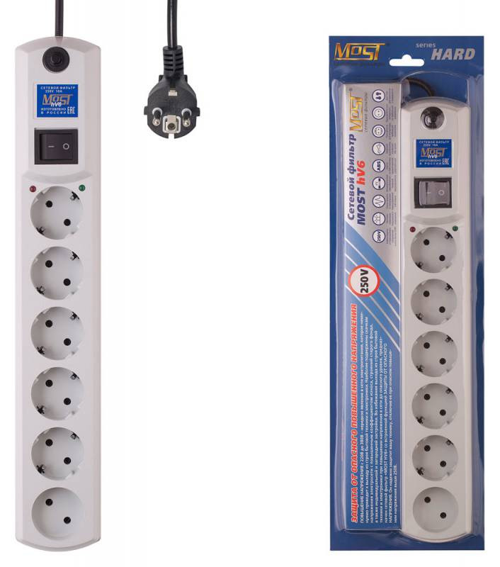 Сетевой фильтр Most HV6 5м (6 розеток) белый (коробка)