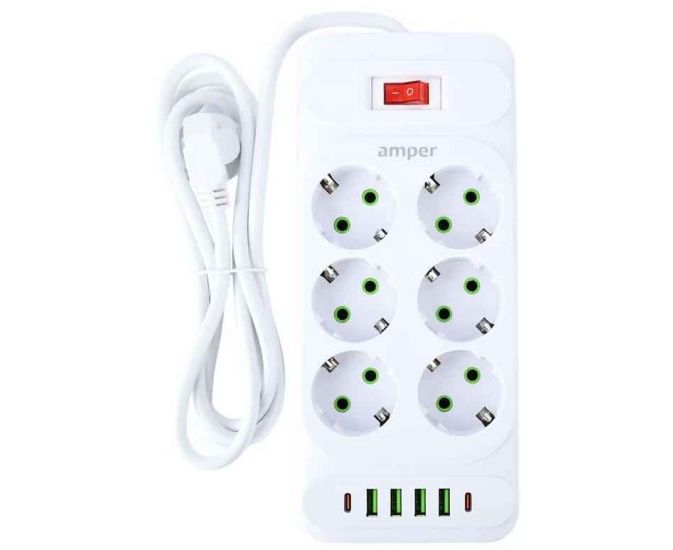 Сетевой удлинитель Amper JH-1076U-4W 4,0м, 6 розеток белый