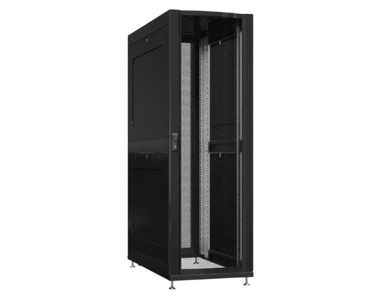 Шкаф серверный Powercom PSR4286-10201-BL напольный 42U 600x800мм пер.дв.перфор. задн.дв.перфор.2-хст. 800кг черный 100кг 2000мм IP20 сталь