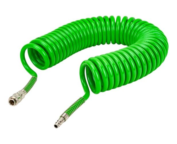 Шланг полиуретановый спиральный с быстросъемами 8/12 мм, 10 м ECO AHU-1080 оснащен быстросъемными соединителями и применяется для соединения пневматического инструмента с компрессорами и линиями подачи сжатого воздуха. Благодаря спиральной форме шланг способен растягиваться и сжиматься по принципу пружины, что предотвращает его запутывание и переламывание.