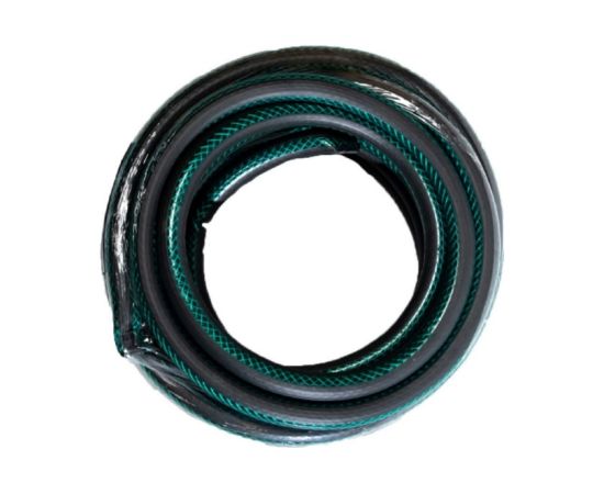 Армированный поливочный шланг Вихрь ПВХ, трёхслойный, 3/4", 15 м, зелёный 73/7/2/9 используется для орошения дачи или сада.