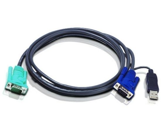 Шнур Aten 2L-5203U мон+клав+мышь USB SPHD15--HD DB15+USB A-Тип Male-2xMale 8+4 проводов опрессованный 3м черный