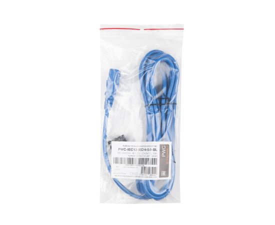 Шнур Hyperline PWC-IEC13-IEC14 (PWC-IEC13-IEC14-5.0-BL) для блока питания IEC 320 C13 вилка C14 5м синий 10А провода 3х1,0кв.мм