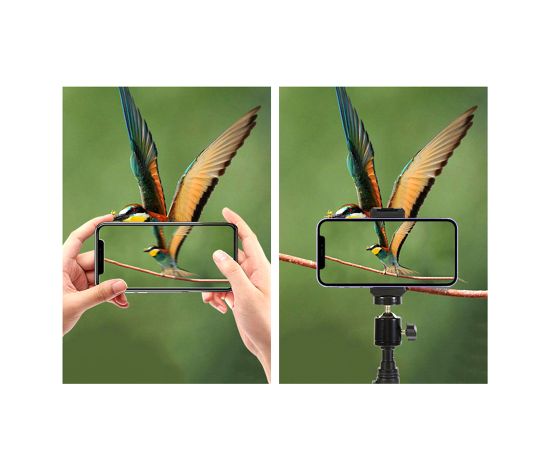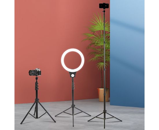 Устойчивый штатив Jmary MT-38 поможет вам снять идеальные фотографии и видеоролики. Это универсальна модель, которая подойдет для студийной фото, видеотехники и держателей с разъемом для крепления 1/4". На стойке можно зафиксировать фотоаппарат, смартфон или камеру, установить кольцевую светодиодную лампу или микрофон. Положение гаджета можно регулировать и выбирать удачный ракурс для съемки, чтобы вы в кадре выглядели идеально. С таким аксессуаром больше не придется переснимать кадр за кадром из-за дрожащих рук. В комплекте со штативом идет держатель для телефона с креплением для вспышки или микрофона. Преимущества напольного штатива для фото/видеокамер: Стойка сделана из надежного и износостойкого материала: металла. Ее вес составляет всего 430 граммов. На нее можно устанавливать гаджеты весом до 1 кг. Благодаря телескопической конструкции высоту штатива можно изменять от 51,5 см до 168 см. У Jmary MT-38 три ноги. Они раздвигаются и фиксируются в одном положении. На каждой ножке имеется прорезиненый наконечник, поэтому стойка устойчиво стоит на любой поверхности, а не скользит. Сверху штатива находится стандартный винт 1/4". На него можно закрепить раздвижной зажим для телефона из комплекта, фотоаппарат или видеокамеру, если в них предусмотрена резьба.