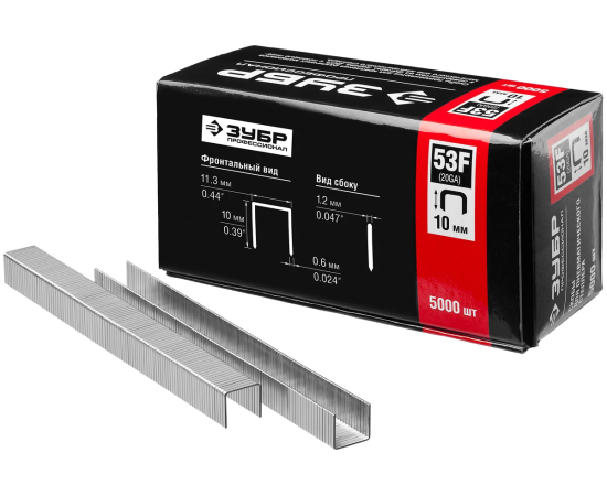 Технические характеристики скоб ЗУБР тип 53F, 10 мм, 5000шт.